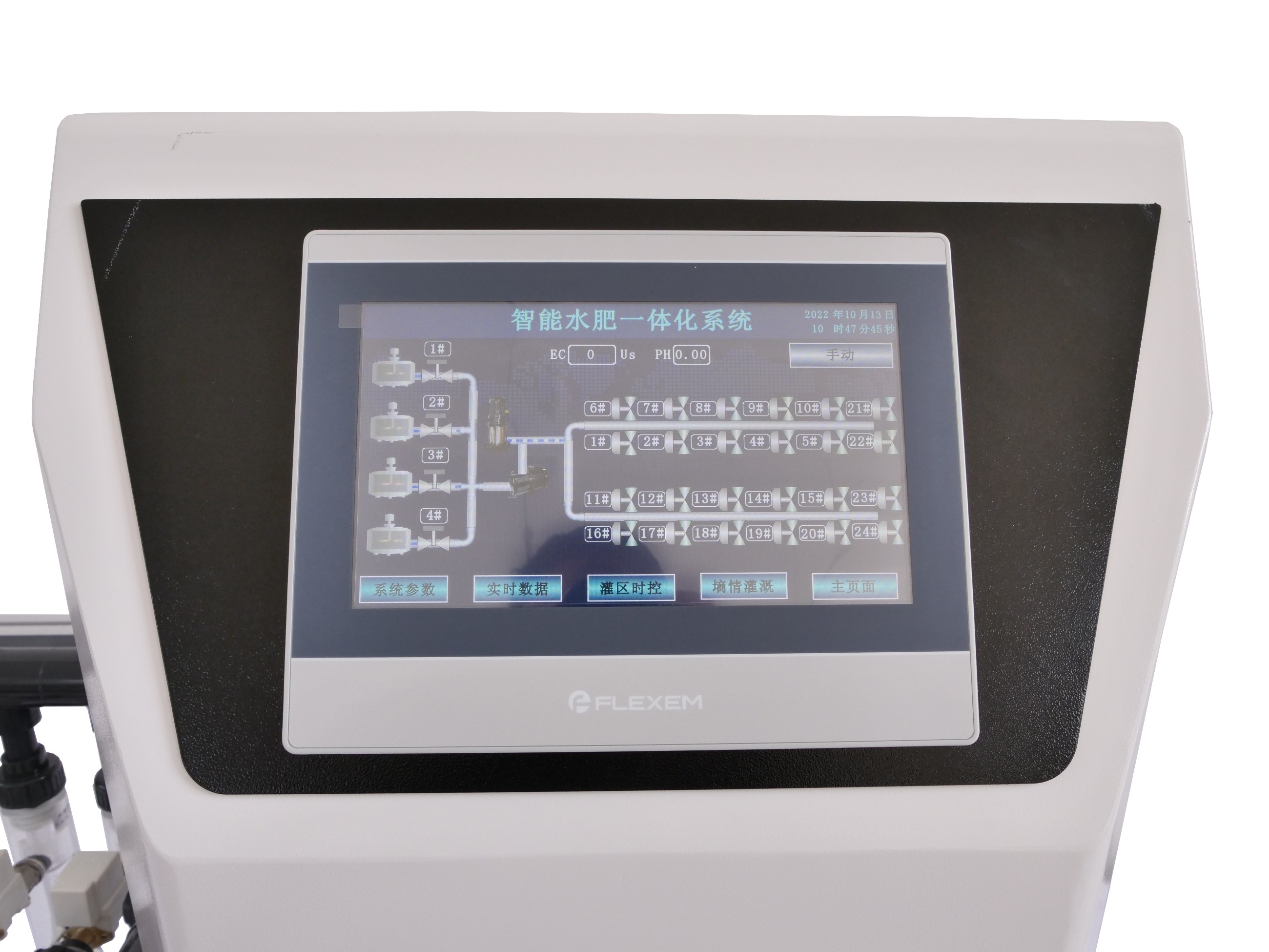 智多星系列物聯網水肥一體機施肥通道有4個,每個施肥通道均配備有流量計,可以顯示當前所施肥料的流量;10寸中文觸摸屏;可控制6灌區(可擴展18灌區);配備有流量調節閥門,可以根據實際需要調整施肥流量;支持物聯網遠程操控。